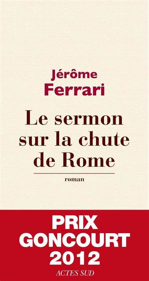 Le sermon sur la chute de Rome, Prix Goncourt 2012, miroite comme une obsidienne, cette pierre noire et brillante ; ses phrases rutilantes s’écoulent, lentes et sereines, au long des pages et disent le destin noir des hommes qui assistent impuissants à l’accomplissement de leur propre naufrage, à la naissance et à la disparition de leurs rêves, sous l’égide lointaine de Saint Augustin et portés par l’écriture sublime de Jérôme Ferrari.